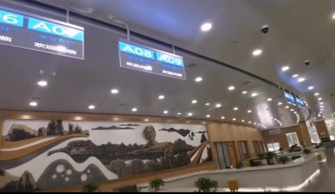 LED玻璃叫号屏主要由ITO导电玻璃、面层玻璃、中间灌胶嵌入LED芯片组成,利用LED芯片发光技术实现文字、图案、视频的展示功能。与传统叫号屏的厚实结构相比,玻璃叫号屏由于具有通透性,不会造成视觉阻碍,可以充分融合到办事大厅的布局和应用中,带来更佳的视觉美感、声光效果。